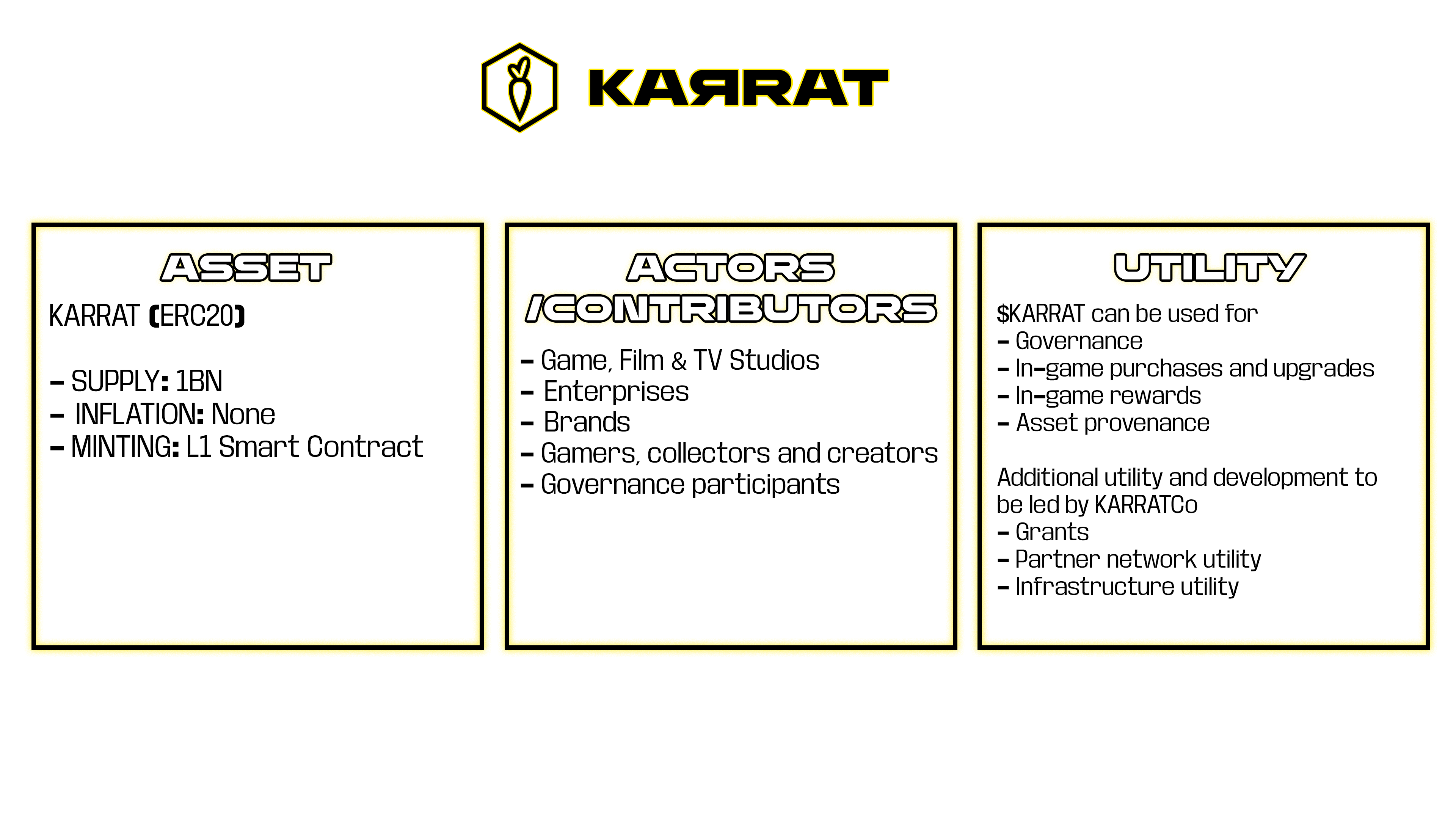 $KARRAT is an ERC20 utility and governance token designed to empower gaming and entertainment ecosystems.